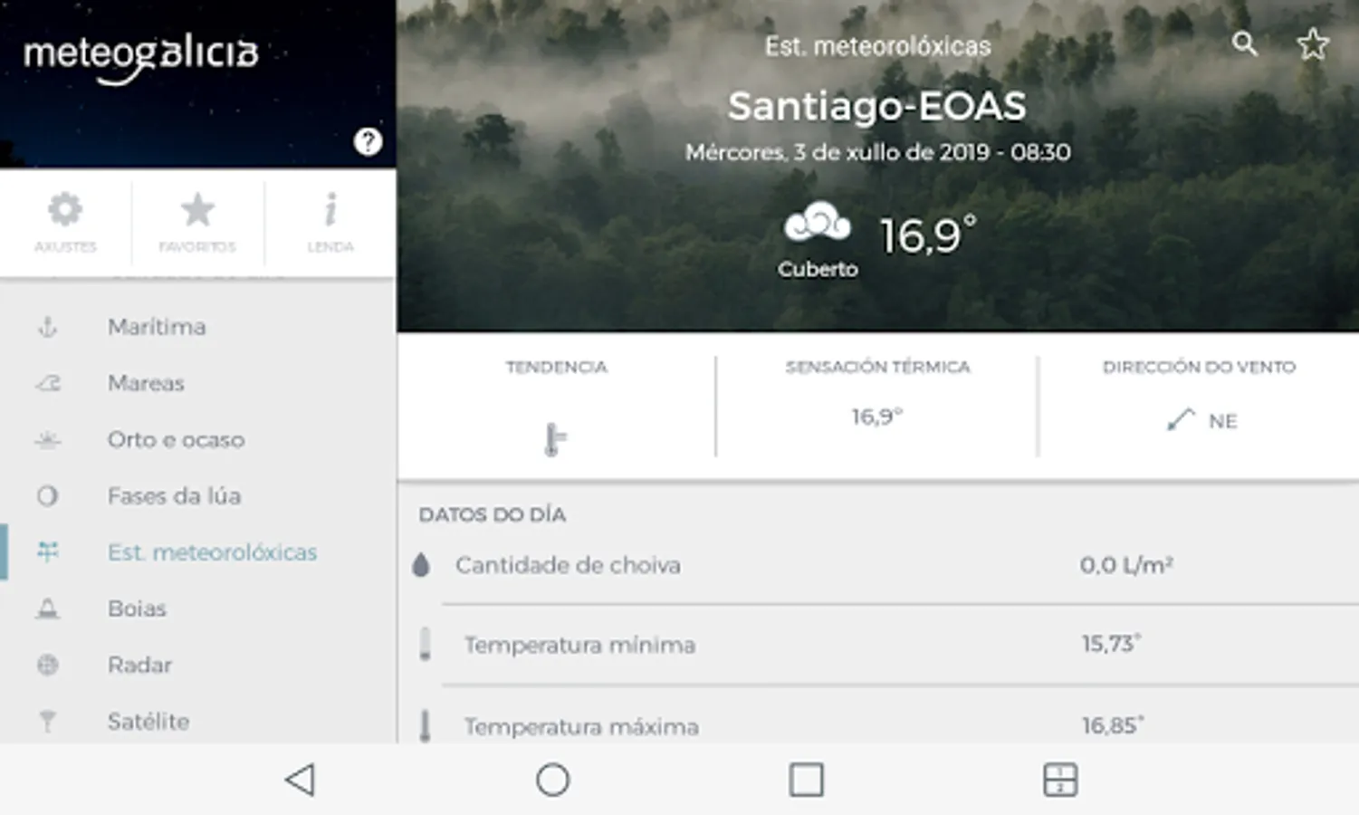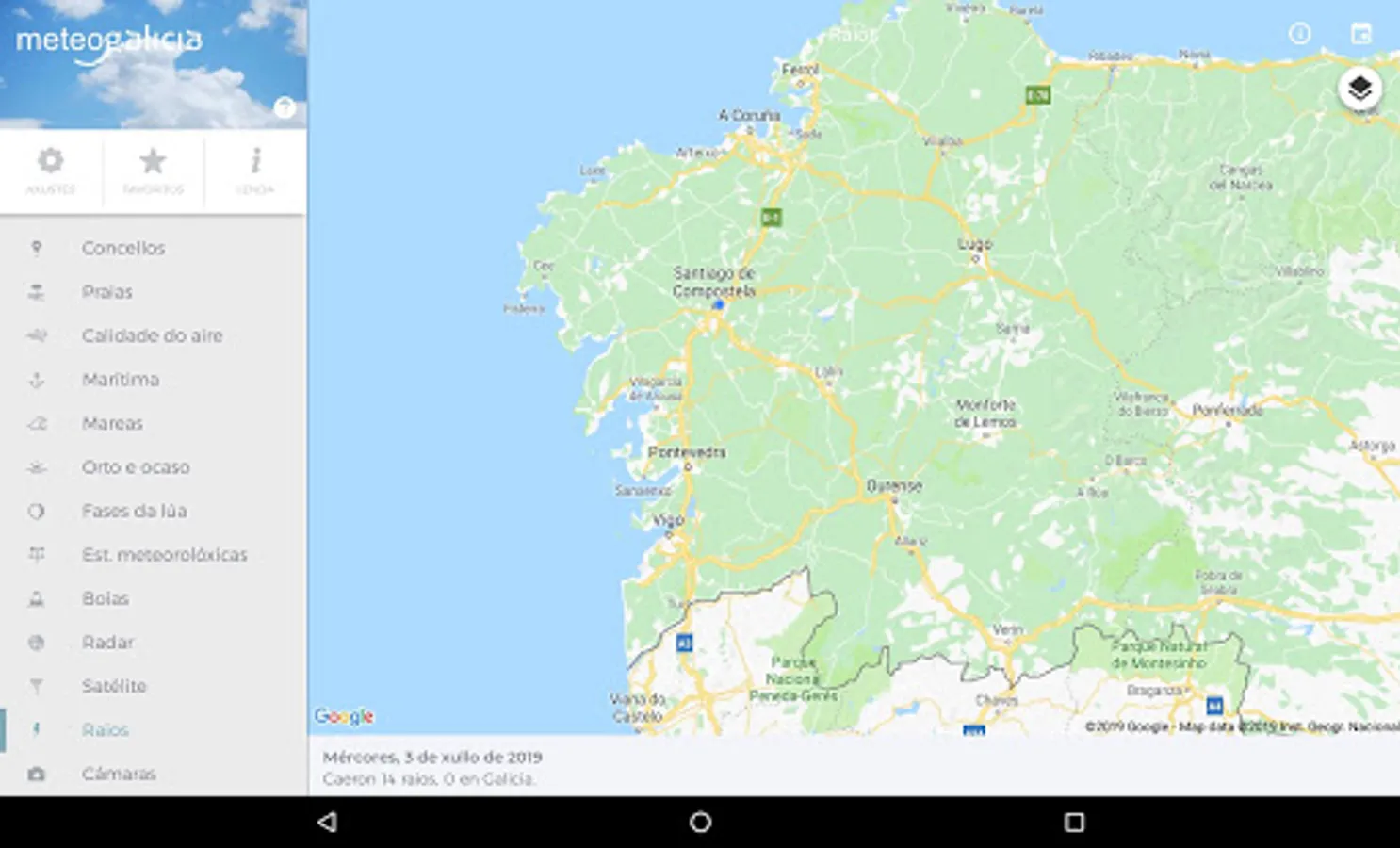 Meteogalicia official application offering detailed information on weather prediction by municipality for the next 10 days, the sea state predictions for all beaches in Galicia, General forecast and tides.