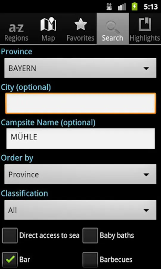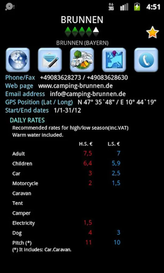 - more info: category, city, GPS location, website, email, phone, campsites photos, ...