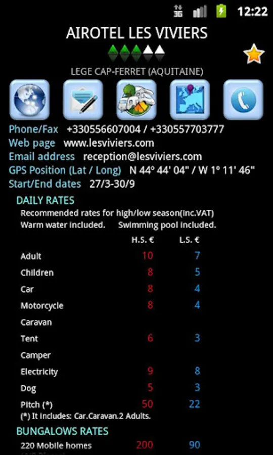 - more info: category, city, GPS location, website, email, phone, campsites photos, ...