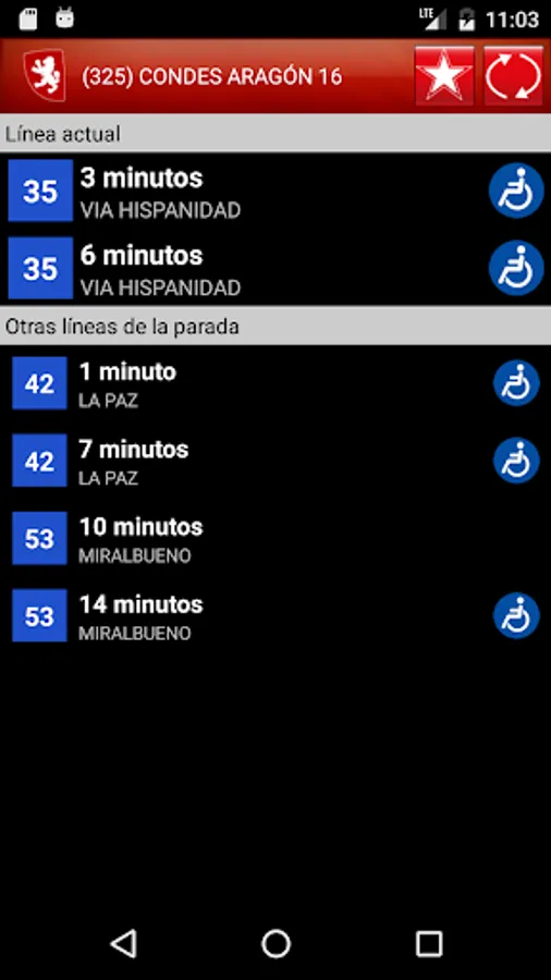 - Favourites: possibility of saving favourite routes and stops to facilitate access to information.