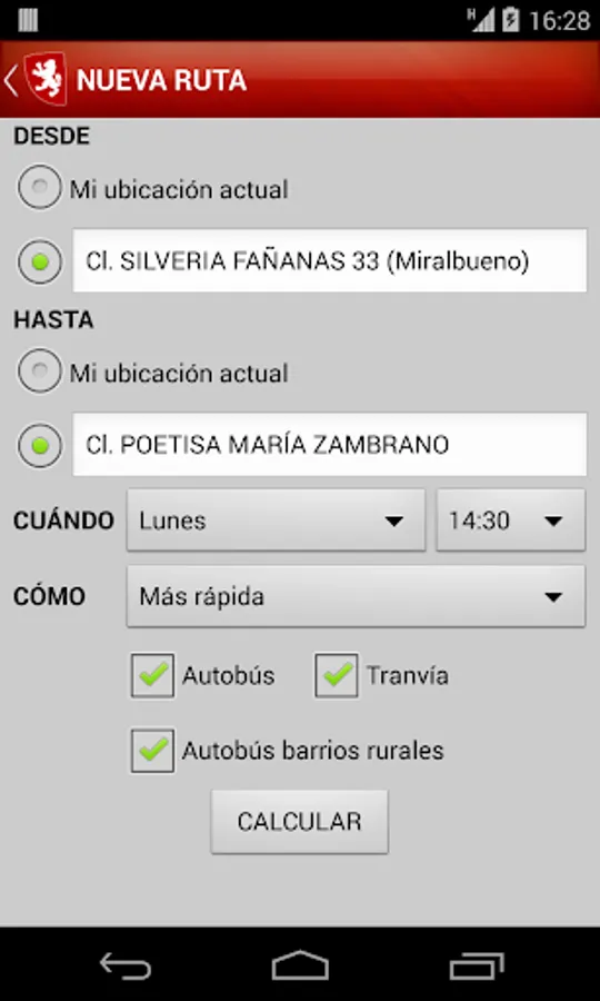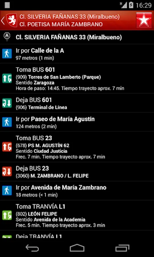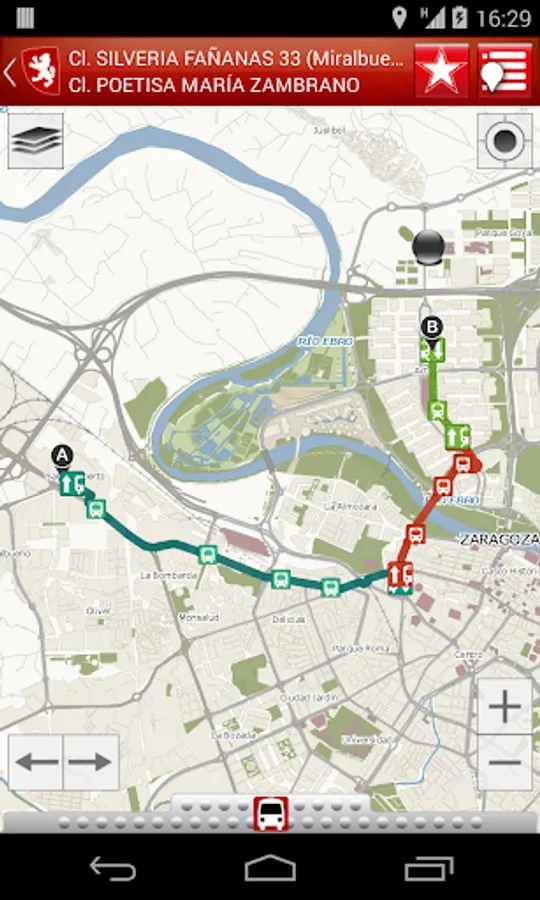 Zaragoza City Council official application to calculate the best route to move inside the city using public transport.