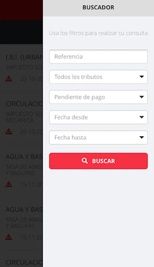 4. Search for taxes and receipts by date, situation, type of tax or receipt, etc.