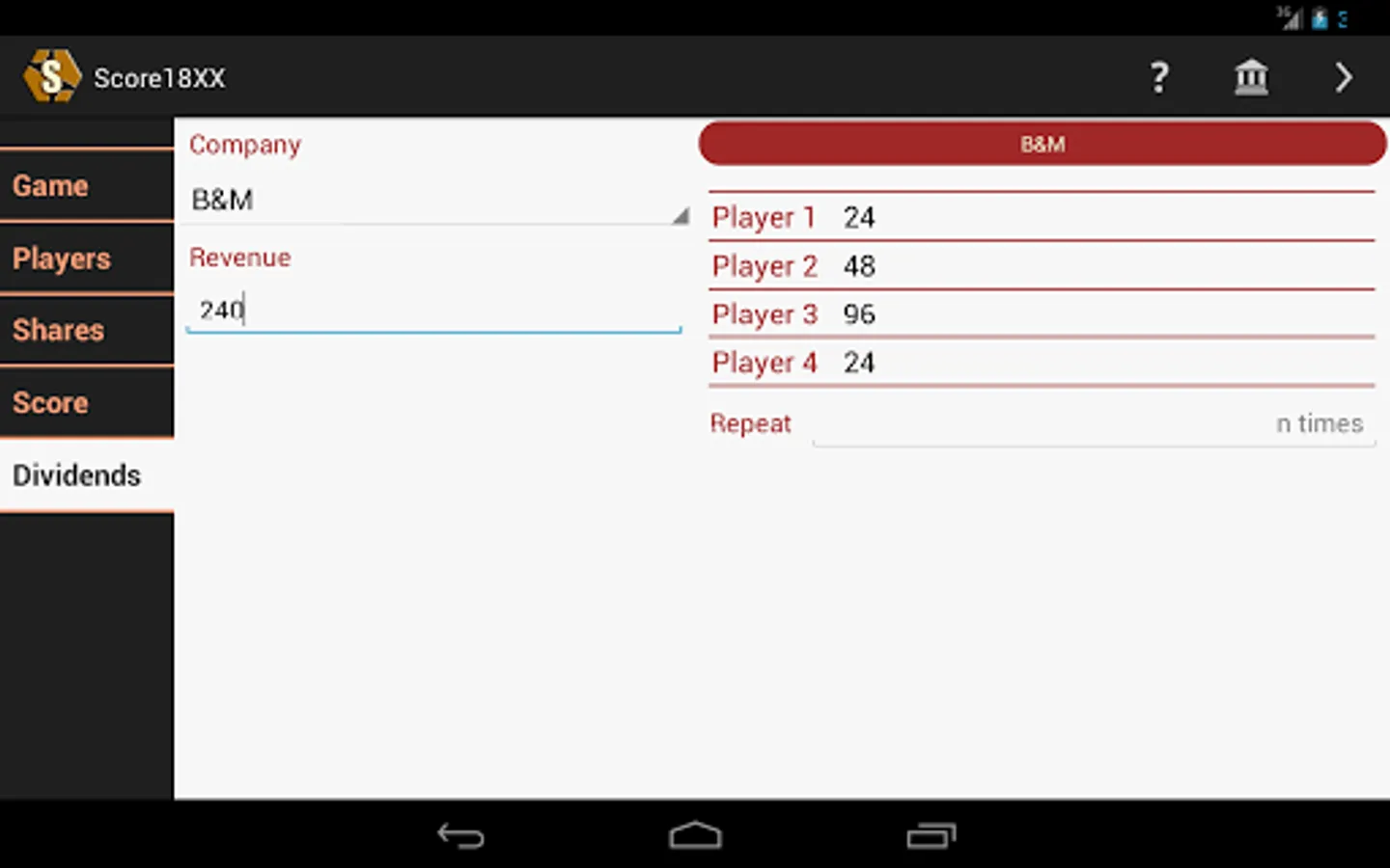 - You can calculate the dividends based on the number of shares of each player and incorporate to the final result