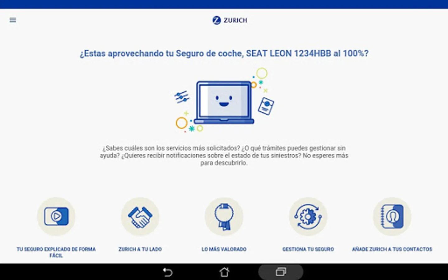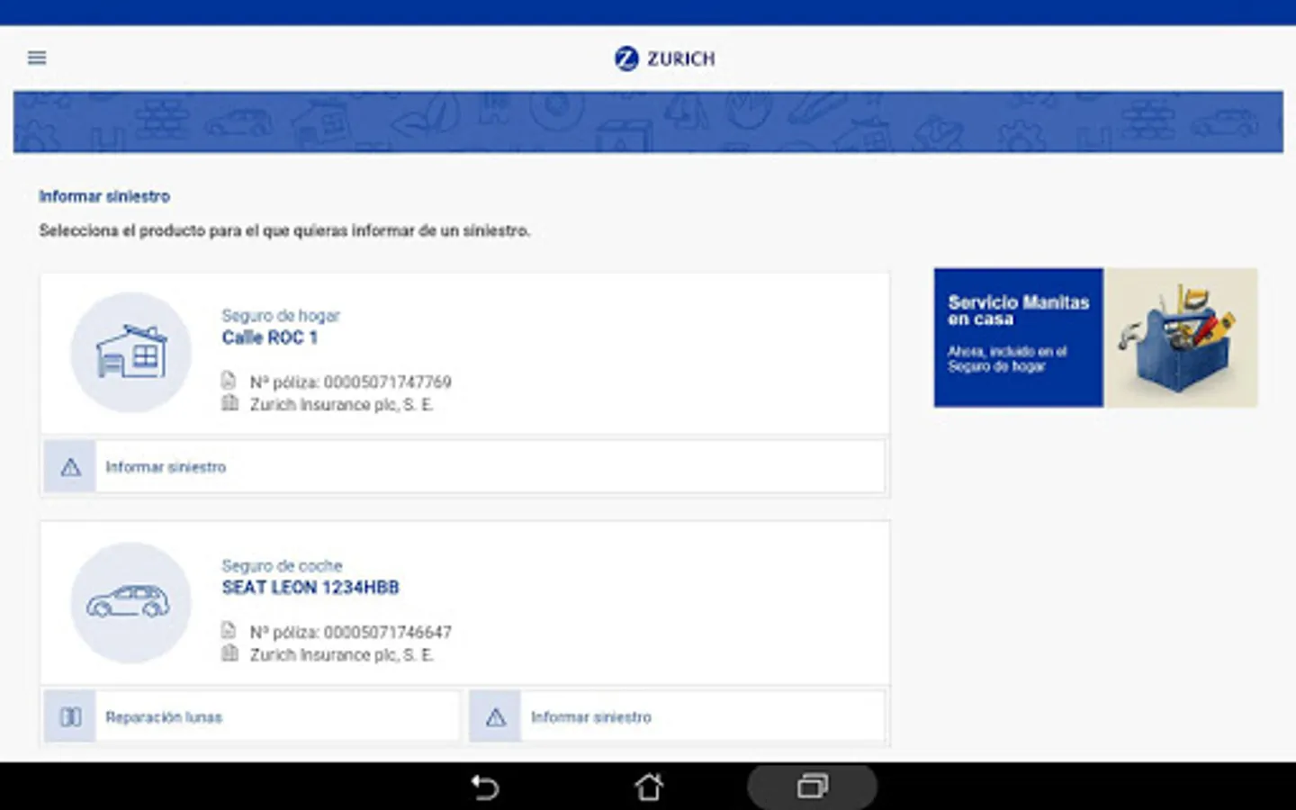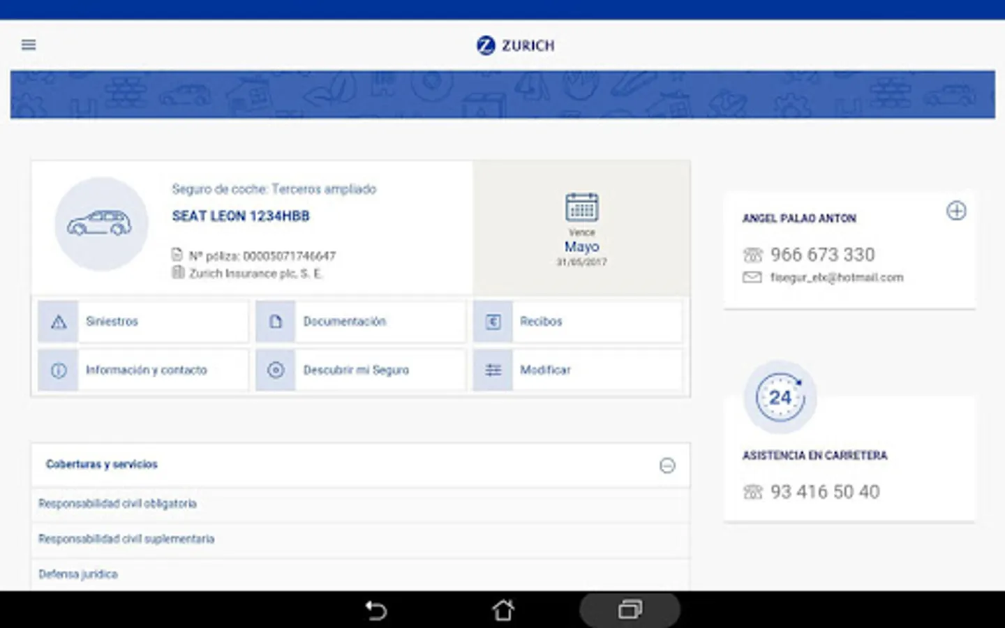 Zurich Seguros free app for clients allows you to manage and consult yours policies through Customer Area Mi Zurich; request roadside, home and business assistance; open a claim and attach it data and images in order to resolve it immediately by a trusted repairer; review your claim status in real time and receive notifications at every progress to its solution; take an appointment for windshield repair, modify your policies data; find your nearest approved repairer or Zurich agent from your location; and much more features like: