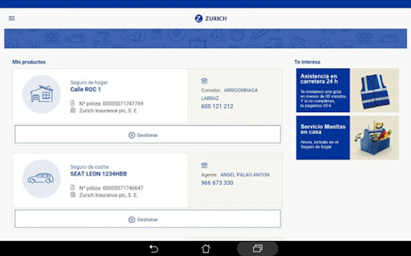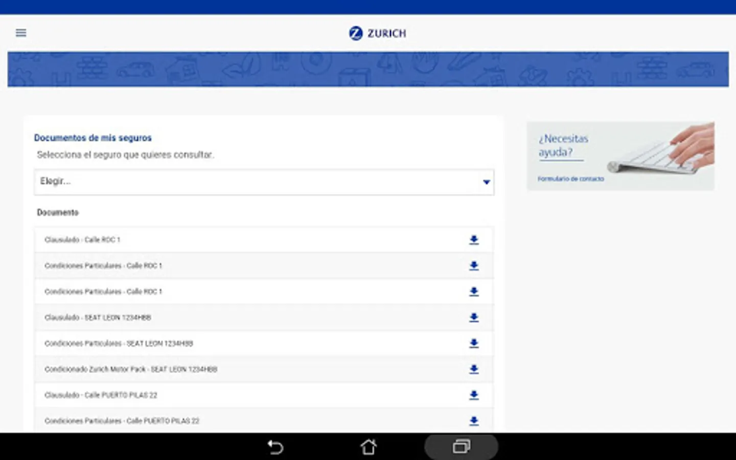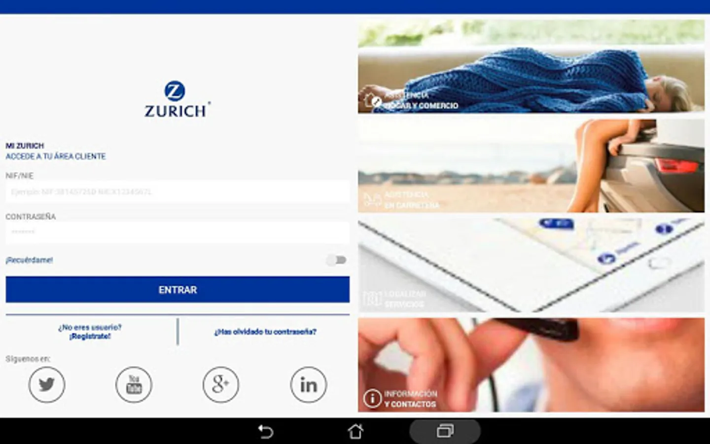 Zurich Seguros free app for clients allows you to manage and consult yours policies through Customer Area Mi Zurich; request roadside, home and business assistance; open a claim and attach it data and images in order to resolve it immediately by a trusted repairer; review your claim status in real time and receive notifications at every progress to its solution; take an appointment for windshield repair, modify your policies data; find your nearest approved repairer or Zurich agent from your location; and much more features like: