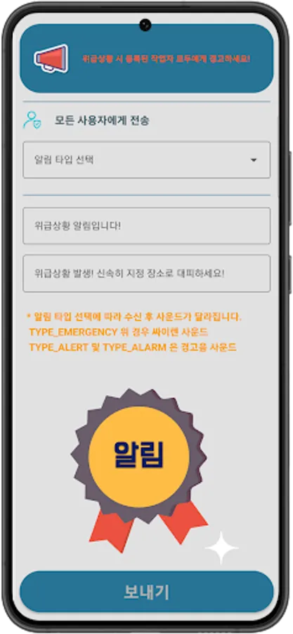 When a emergency situation occurs , when a user presses the emergency button (we sell the bluetooth button) , a siren sounds on the user's smartphone and manager smartphone, and the emergency situation including the user's location information is immediately notified to the preset safety manager through a push notification. Managers can also notify all users who have installed the app about sirens and emergencies through push notification
