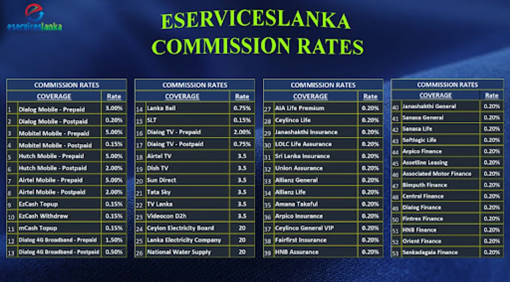 Eservices Lanka App is an app that combines all your services like your daily reload / phone bills / water and electricity bills / life insurance premiums / finance premiums, / eZCash / mCash. The specialty here is that you get special offers for all the services except the water and electricity bills you pay. Example - Mobitel Rs 100 reload costs Rs 95 / - * * You can also avail this service 24 hours a day and reload not only your own but also others' bill payments etc.