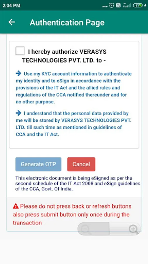 5. User will generate OTP on his registered mobile number.