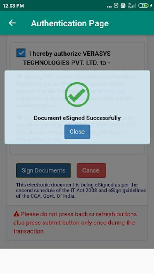 6. After validating OTP document will be signed and then can be download and share.