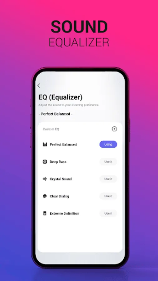 1. Sound equalization: Select one of our custom preset, or customize the sound just the way you like it with the 10-octave band equalizer.