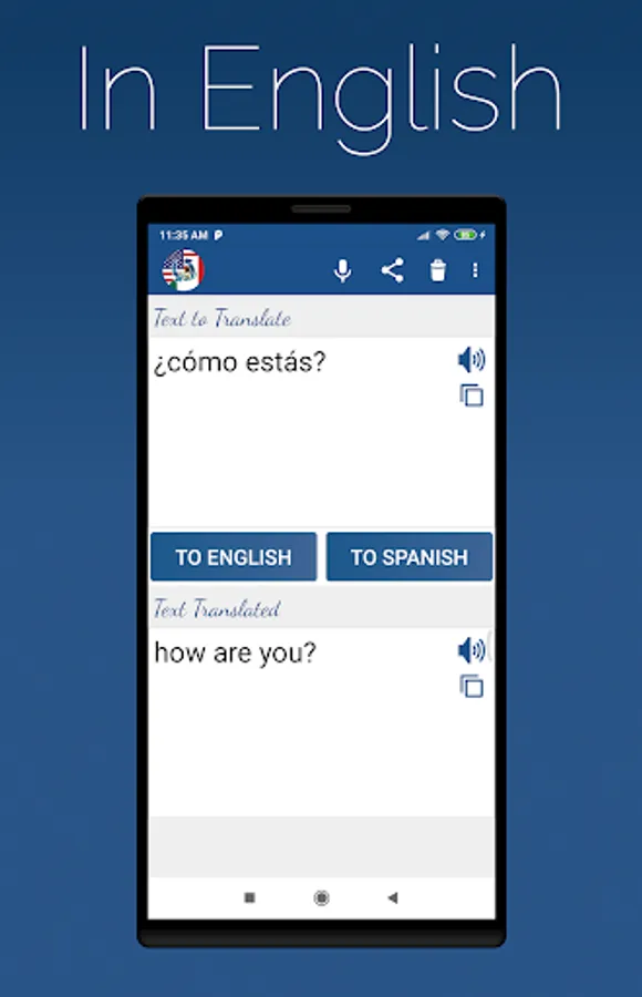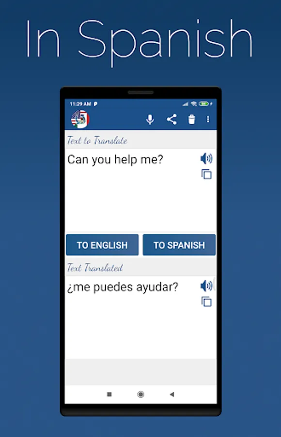 This application allows you to translate english words to spanish sentences and inversely, you can also make translations from spanish words to english sentences.