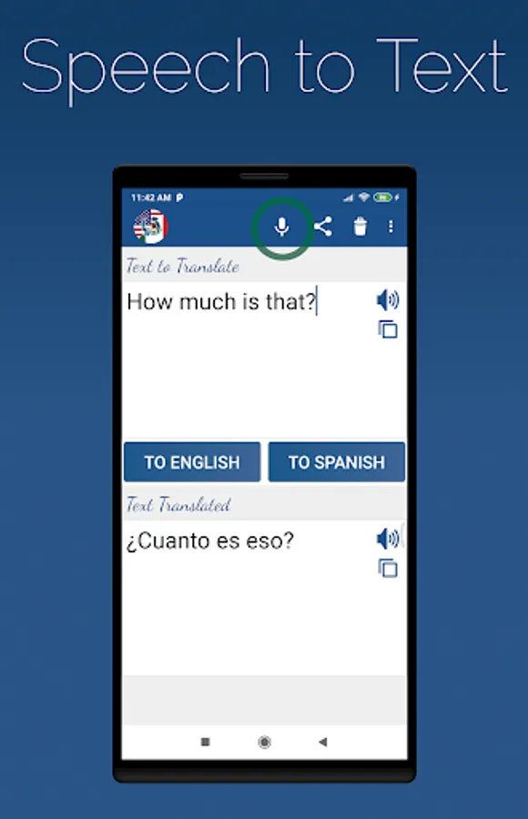 You don't like to type and you prefer to speak? it is possible to convert your voice to text, if you want to try, press the microphone button and talk to your phone, and you will see the text written and ready to translate to your favorite language.
