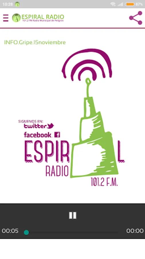 A different and participatory radio full of diverse programming as well as music, interviews, movies, soccer and much more. Discover Espiral Radio from our application and do not miss the content we offer.