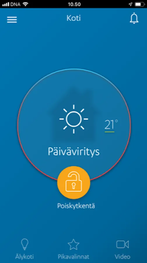 Voit ohjata ja valvoa Kotivartija hälytysjärjestelmääsi sovelluksella. Kotivartijasovelluksella kytket helposti kotisi hälytyksen päälle ja pois.
