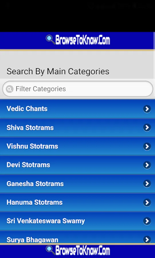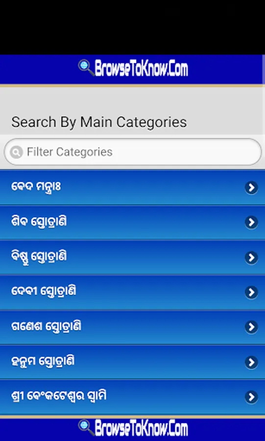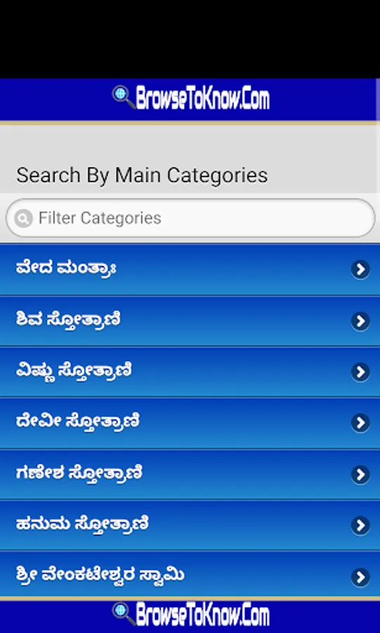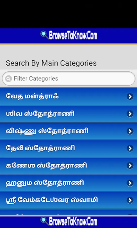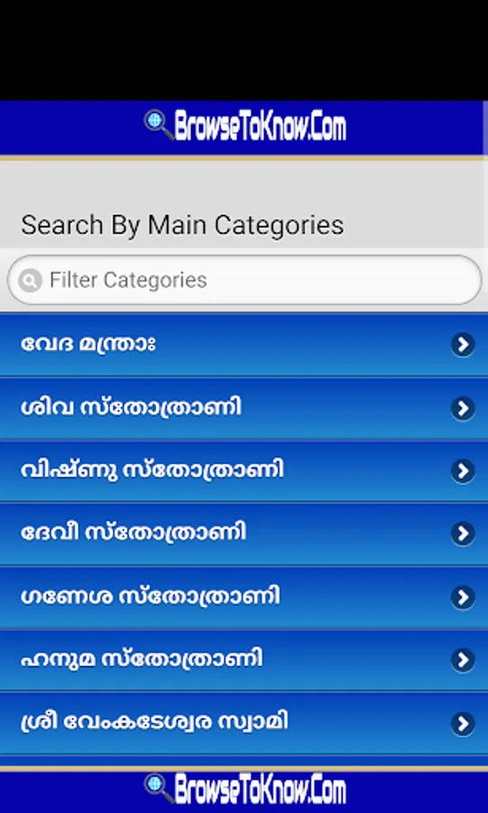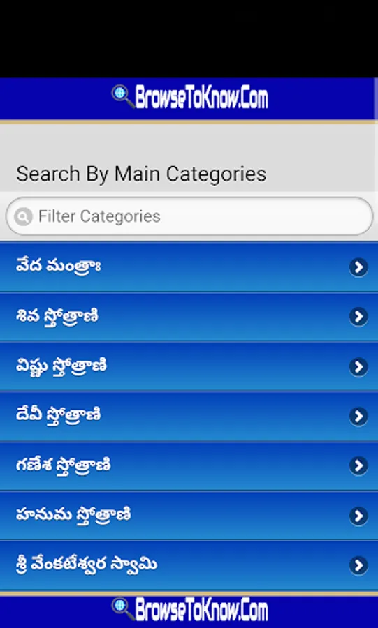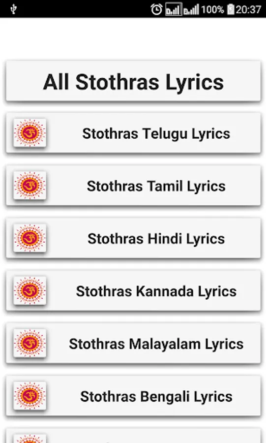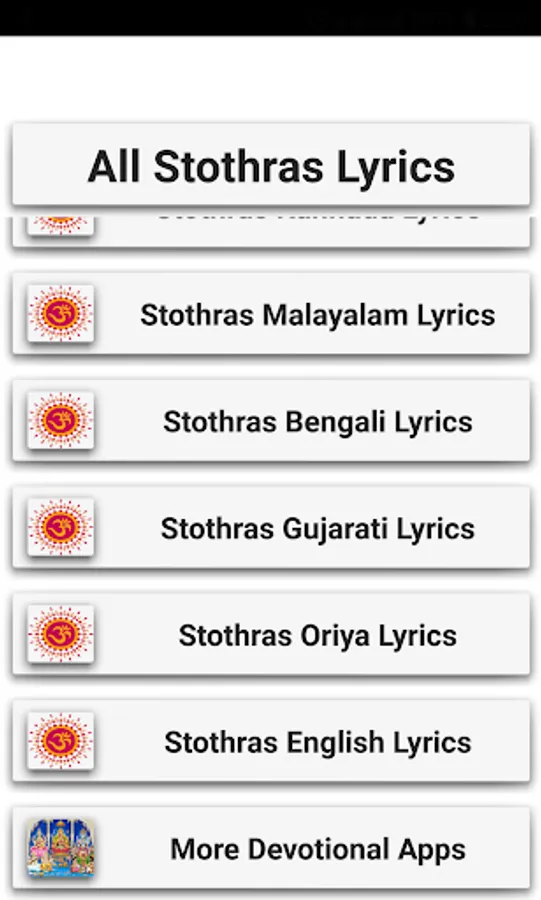 This devotional app contains all stothras lyrics in Telugu, Tamil, Kannada, Malayalam, Oriya, Hindi, Bengali, Gujarati and English.
