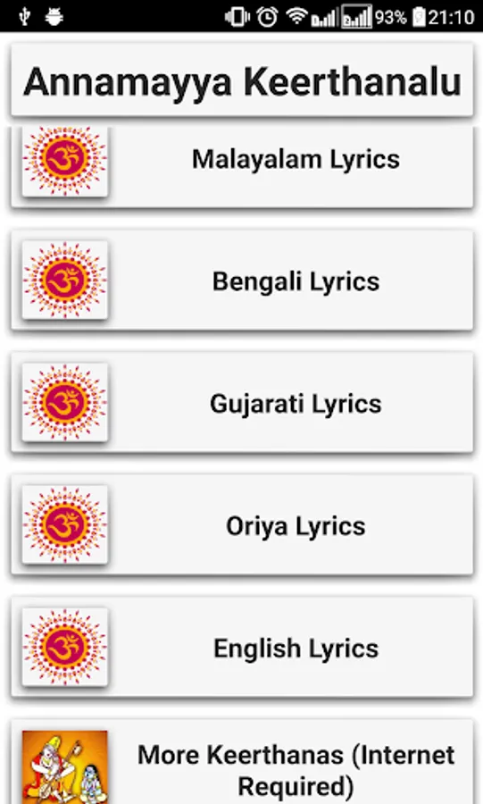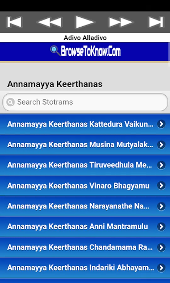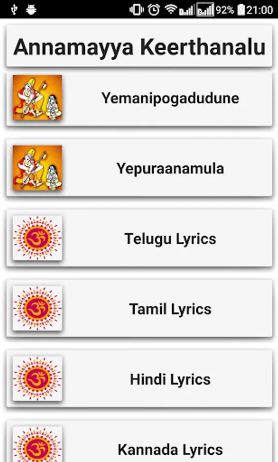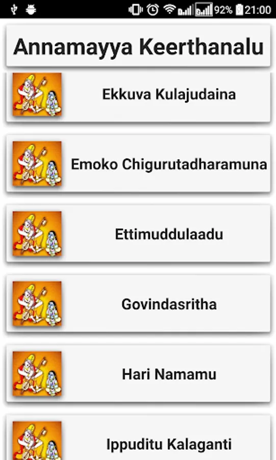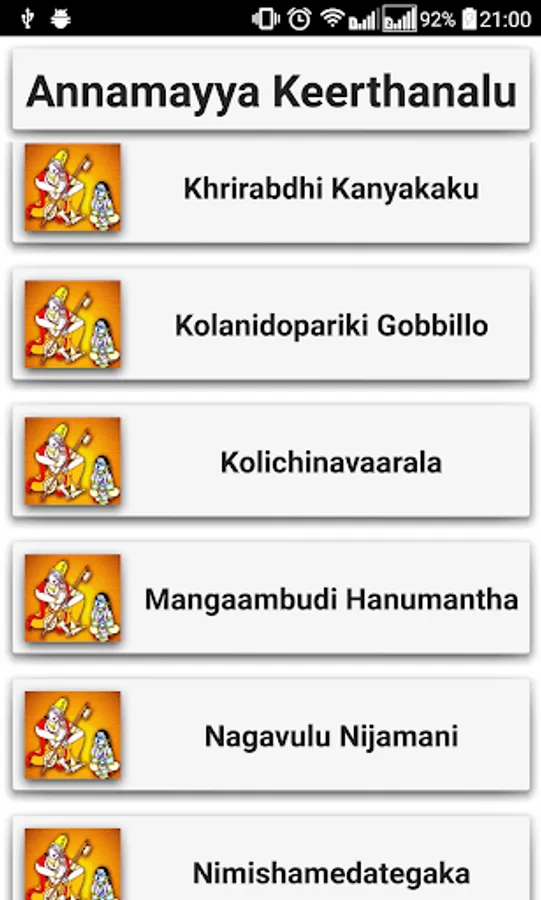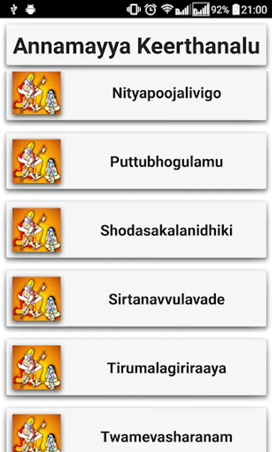 This devotional app Annamayya Keerthanalu contains some of the best Venkateshwara Songs by Sri Annamacharya. The following songs are part of this app.