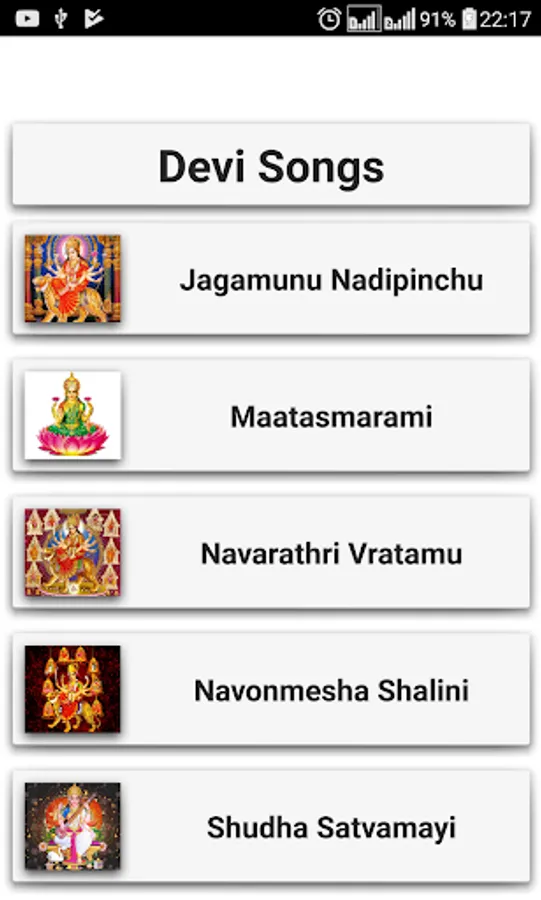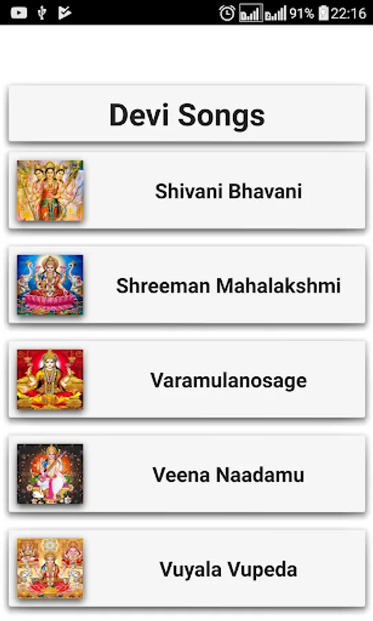 Devi Devotional Songs Telugu app contains Durga, Lakshmi, Santoshi, Parvathi and many more devotional songs.