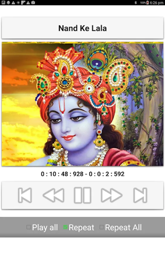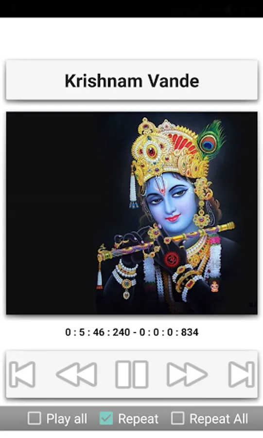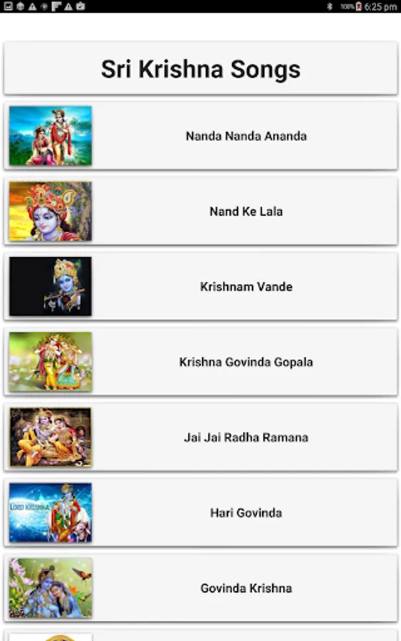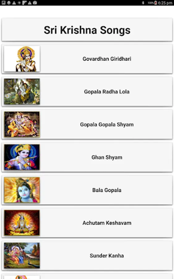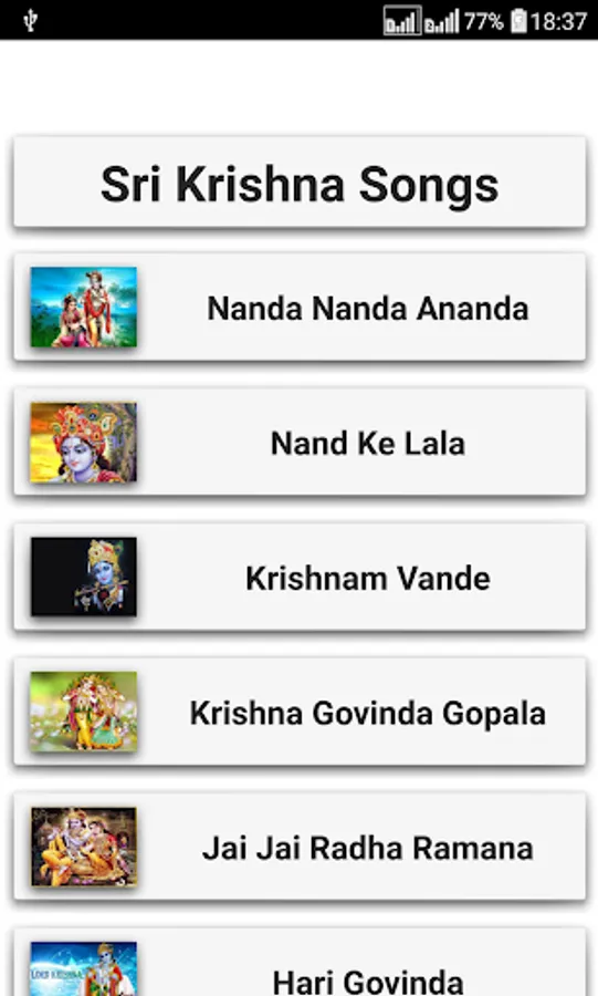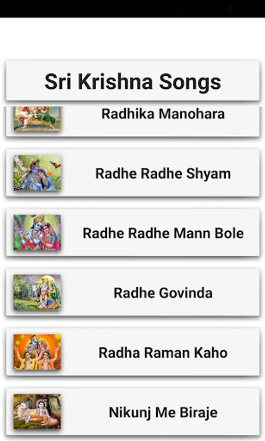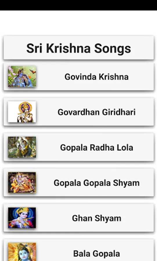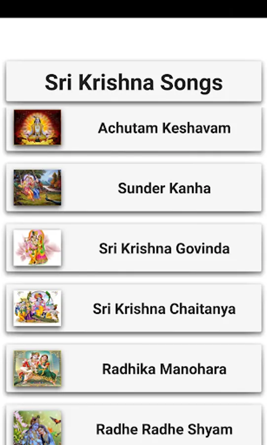The app contains the following Hindu devotional songs and Sri Krishna Bhajans