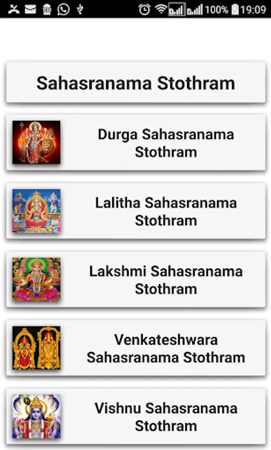 This devotional app contains the Sahasranama Stothrams of Sri Durga, Lalitha, Lakshmi, Venkateshwara and Vishnu as mentioned below.