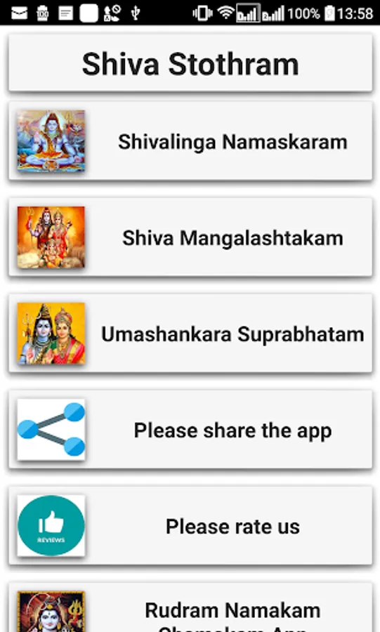 This Shiva devotional app contains the following devotional songs of god Shiva.