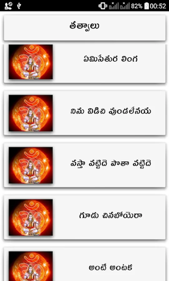 This devotional app Thatwalu contains Shiva devotional songs as mentioned below.