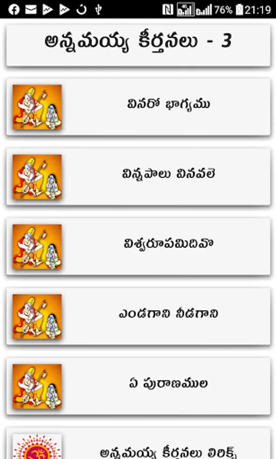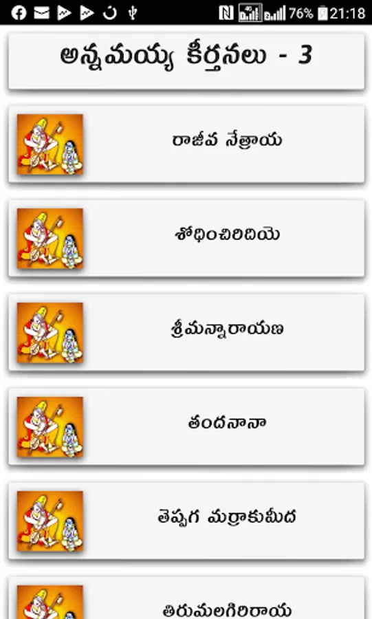 This app contains some of the best Annamayya Keertanalu (Annamayya Kritis). Please find the list of devotional songs the app contains.