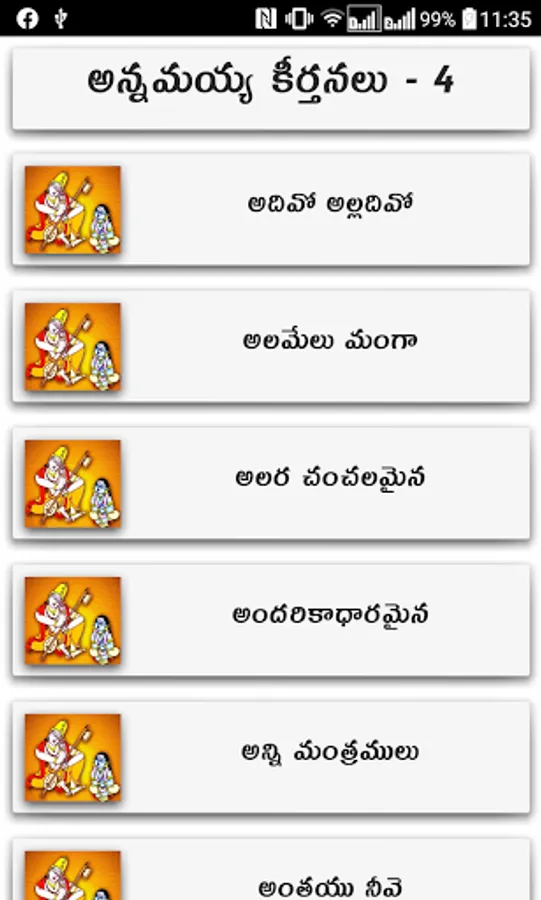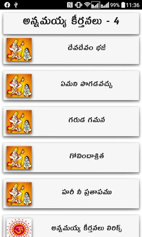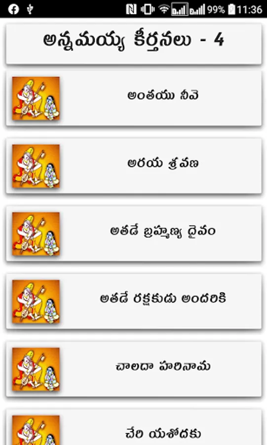This app contains some of the best Annamayya Keertanalu (Annamayya Kritis). Please find the list of devotional songs the app contains.