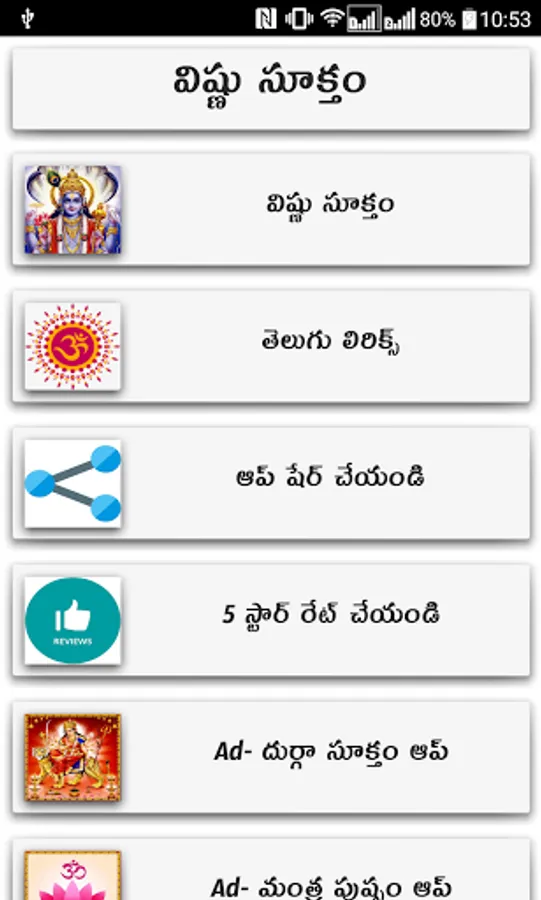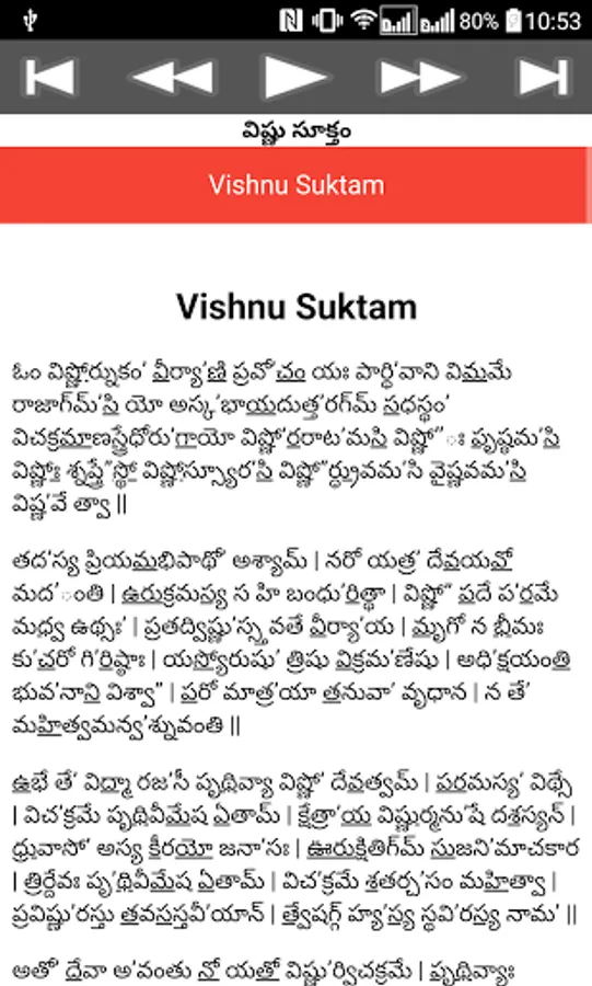 This devotional app contains Vishnu Suktam audio and Vishnu Suktam lyrics in Telugu language.