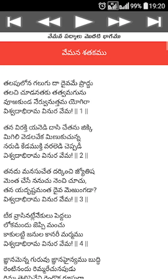 Vemana Shatakam Telugu is nothing but Vemana Padyalu (poetry) in Telugu language.