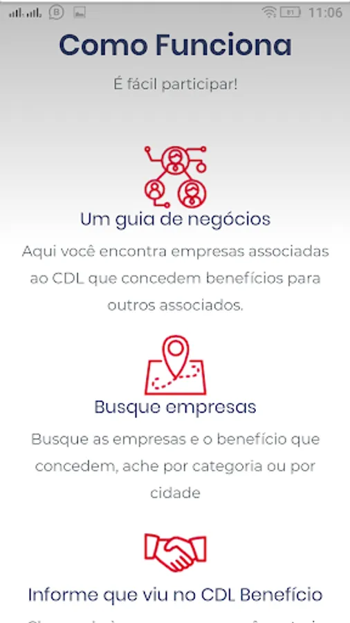 CDL Benefício is a loyalty program developed exclusively for members of Baixada Santista CDLs. At CDL Benefits, members can enjoy as users and also as advantages and discounts providers in their establishments.