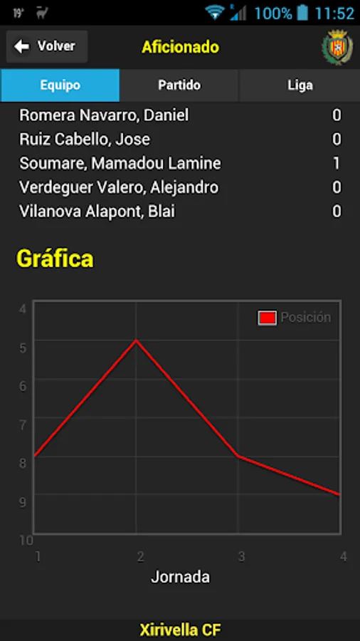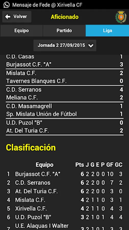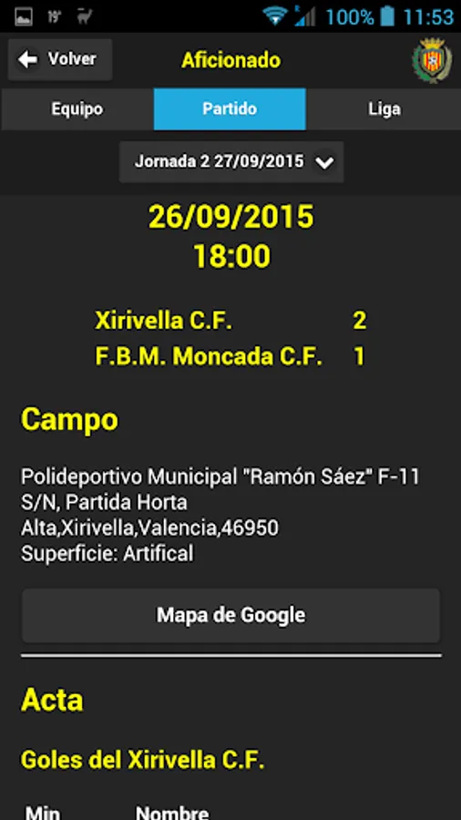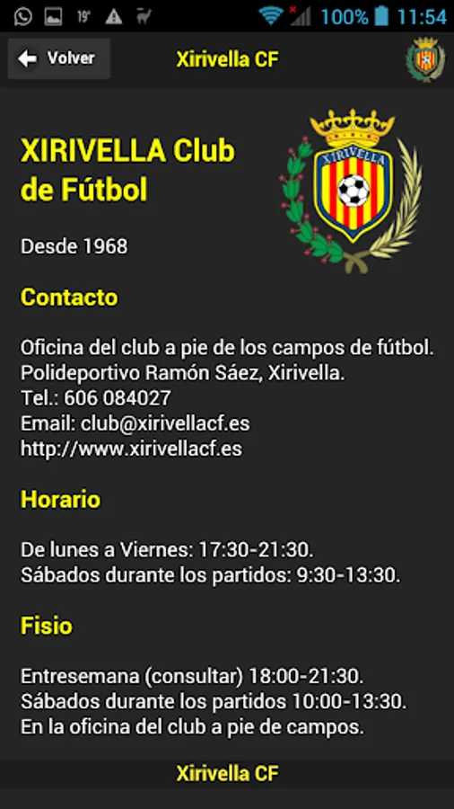 For the data of the current season it is necessary to install the application "Xirivella CF" from the Google Play Store.