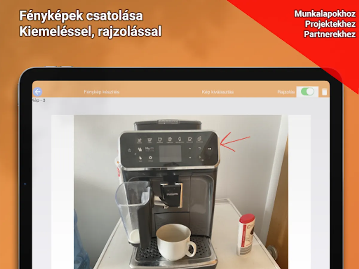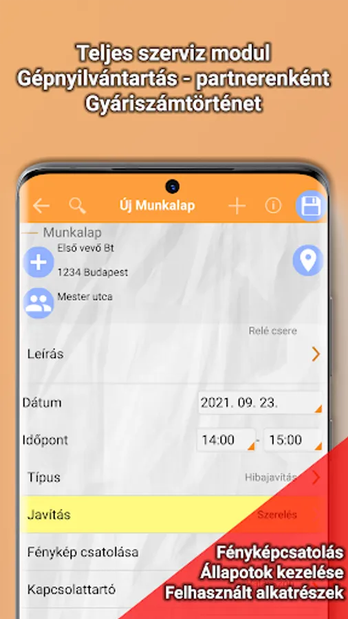 - you can record or continue a worksheet, for which you can photograph the damaged product that needs to be repaired, record the detected error, repair, used tools - and even sign the completed work.