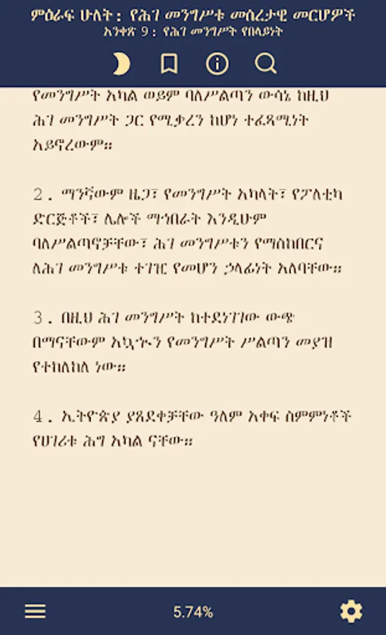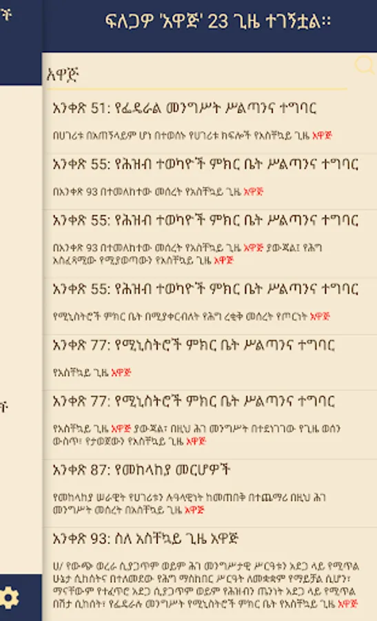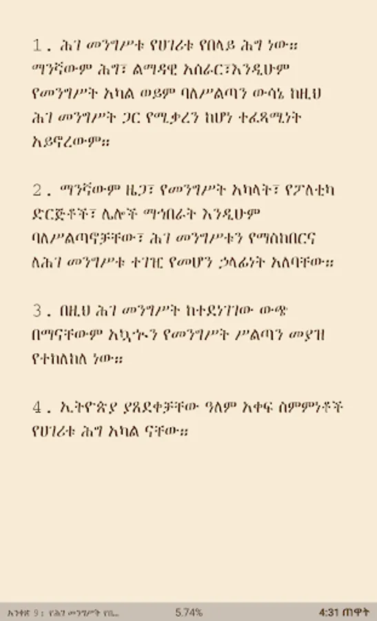Here you can read the Constitution of the Federal Democratic Republic of Ethiopia in three different languages; Amharic, Tigrigna and English.