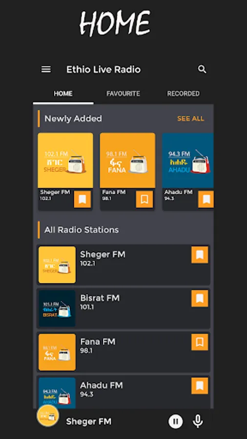 Ethiopian Live Radio is an app that enables to tune into various Ethiopian streaming radio stations. The application includes popular radio stations such as Sheger FM, Bisrat FM, Fana FM, Ahadu FM, Zami FM, Afro FM, Dimtsi Weyane, Habesha Radio, ETHIO FM and so on. With this app, you can listen to what's happening around the world and Ethiopia through all the available streaming radio stations. In addition to the news, you can entertain yourself by listening to so many enjoyable programs such as dramas, comedies, holiday live shows, music, and etc.