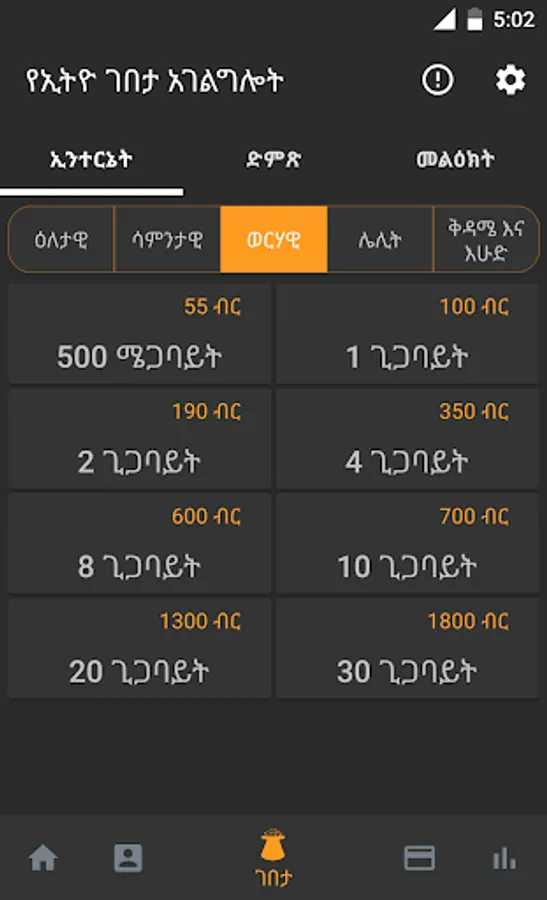 ★ Buy Ethio Gebeta packages: Voice, Internet and SMS packages.