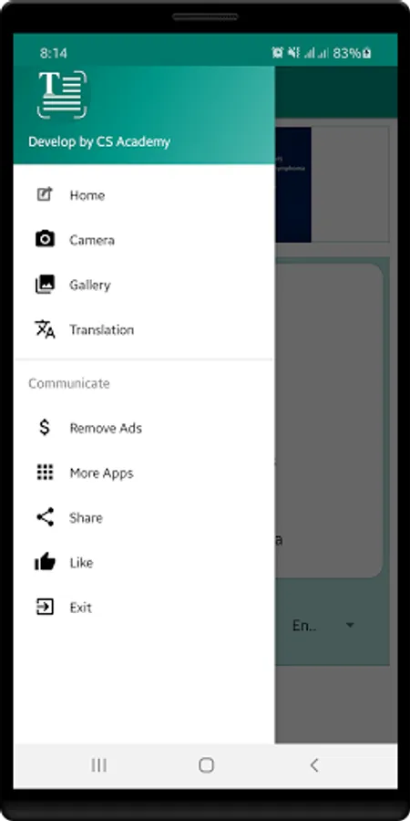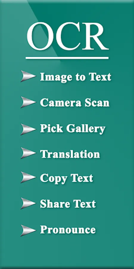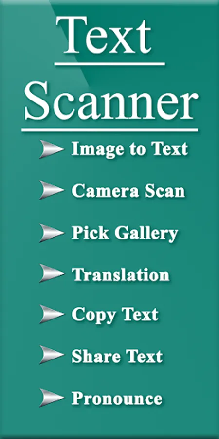 OCR Text Scanner is picture to text converter, with which you can extract text from picture that either taken by camera or select form Phone gallery and then translate to multiple languages. Text Scanner OCR translate the extracted text from images in European languages, such as English, Spanish, French, Italian, Dutch, Norwegian, German, Portuguese, Czech, Slovak, Polish, Hungarian, Welsh, Danish, Swedish, Turkish, Finnish, and Icelandic, user can further pronounce, copy and share the extracted text. You can turn the scanned text into speech and read text from photo with TTS (Text to Speech) conversion in almost all languages. Just sit back and listen to the information you need.