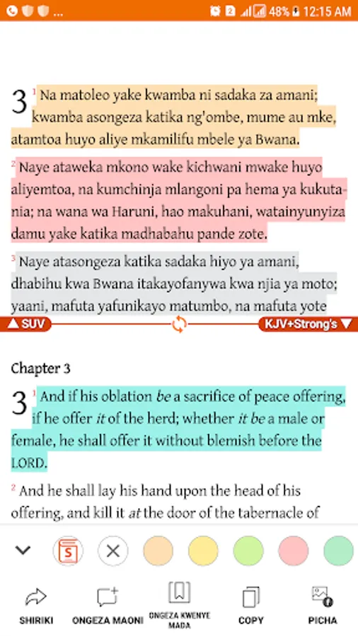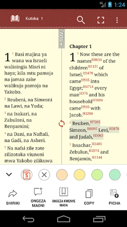 Swahili Bible with English KJV Strongs Concordance. Biblia Takatifu