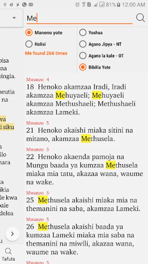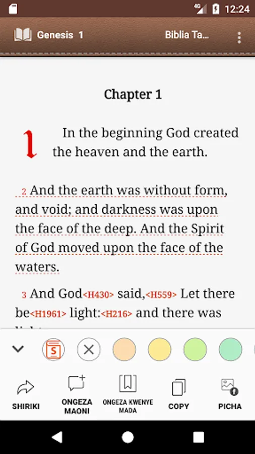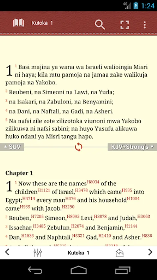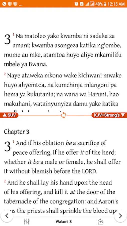 An offline Swahili Bible Biblia Takatifu app with KJV Strongs Concordance which helps you to read the word of God or for daily bible study at any place at any time with out internet connection.