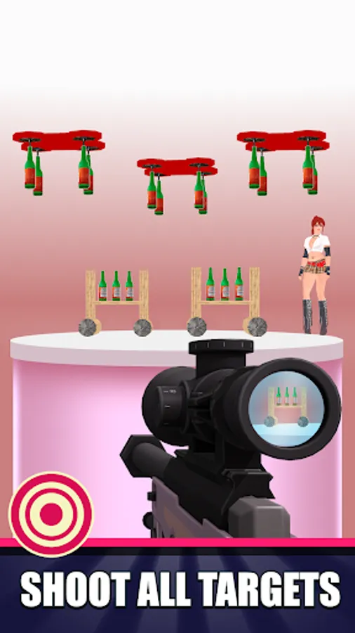 While playing a gun bottle shooting, consider wind flow and direction before shooting; the wind will give you a realistic shooter game experience and make this game one of the best sniper games to target bottles and shoot them.