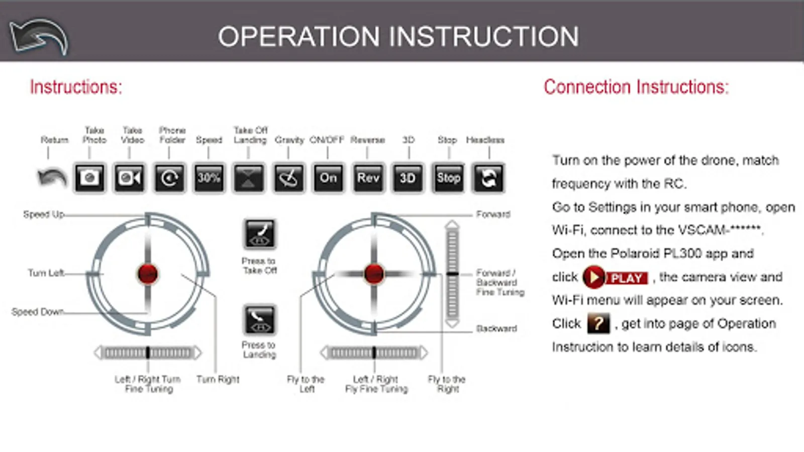 This is an APP for the Polaroid PL300 Drone controlled by Wi-Fi and with real-time video transfer.