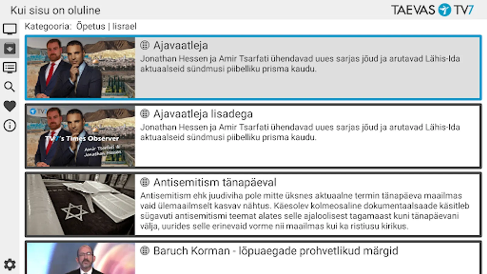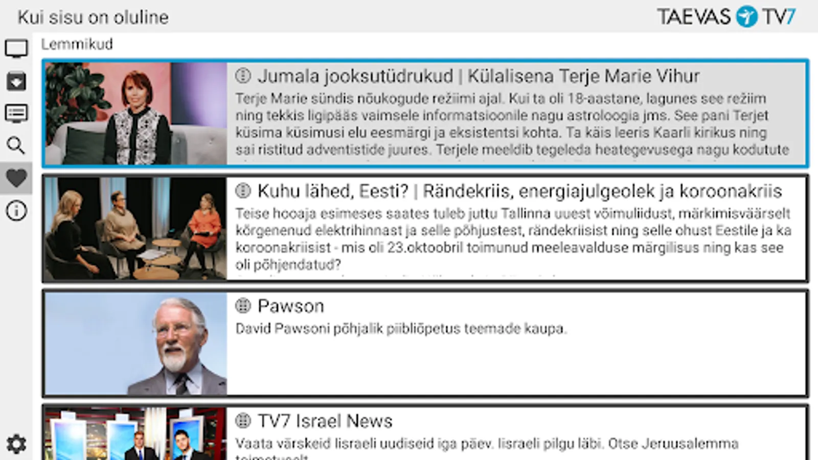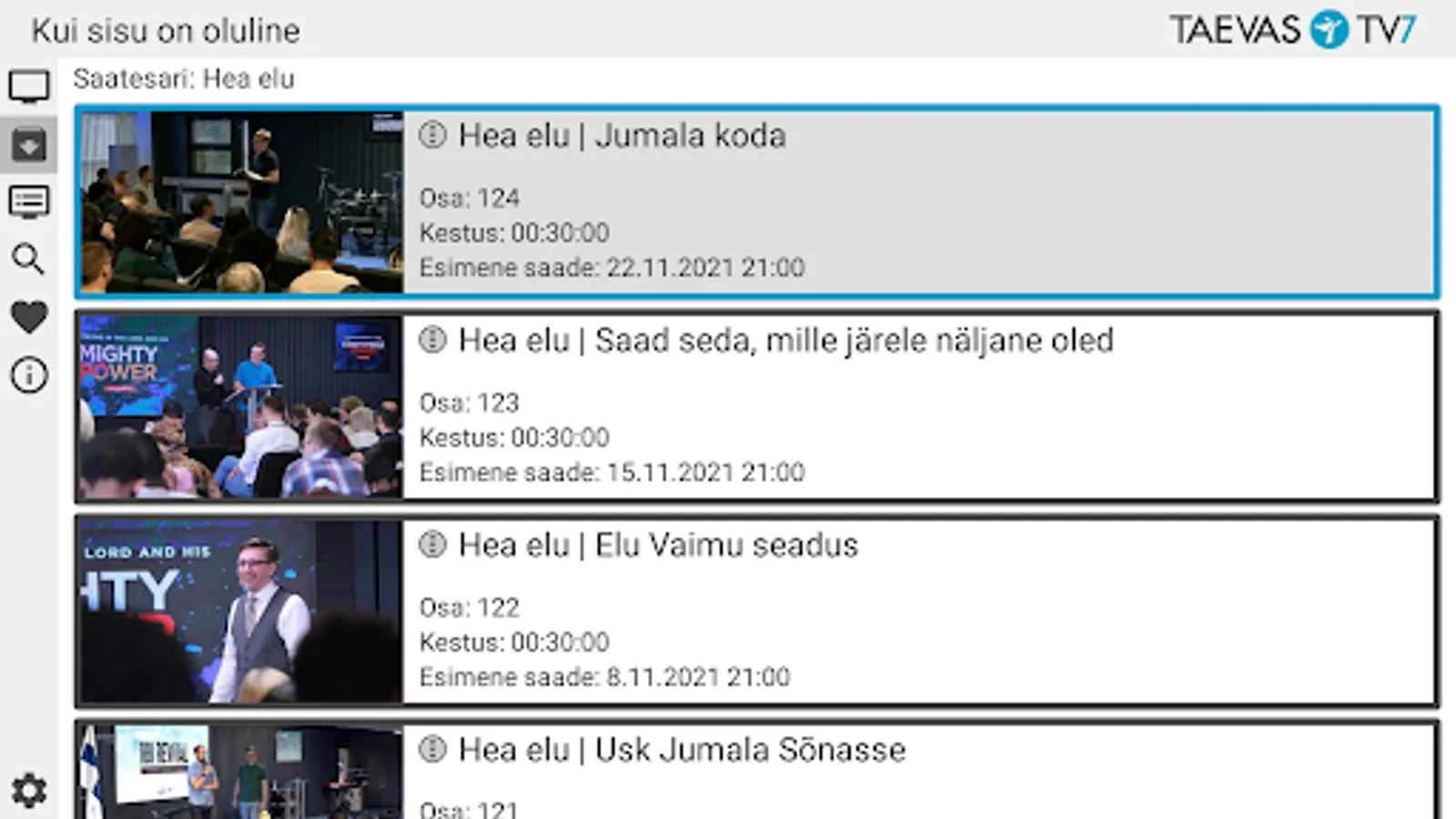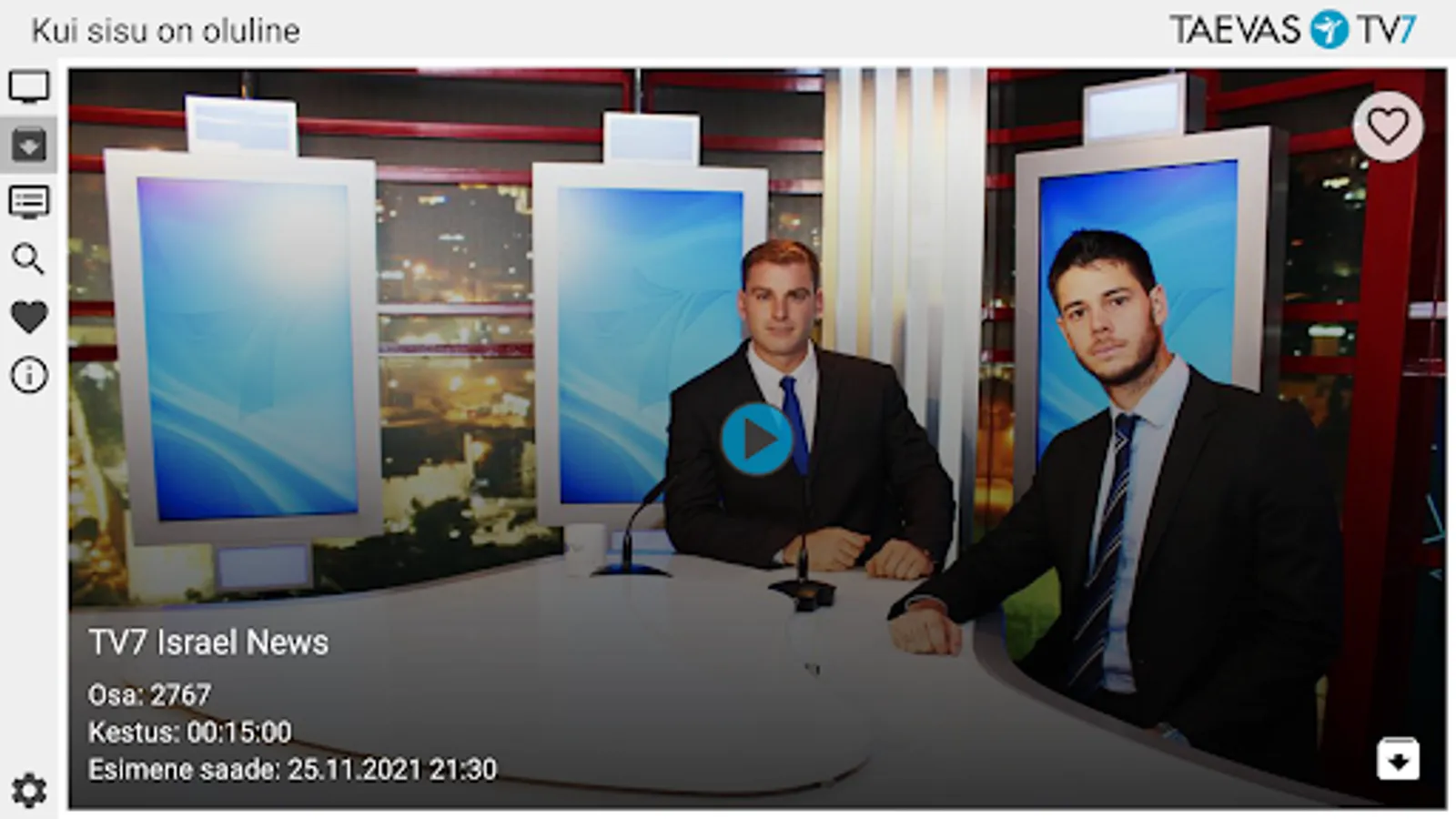 The application allows you to watch Taevas TV7 net TV, program archive and program schedule. The application allows you to search for programs in the archive.