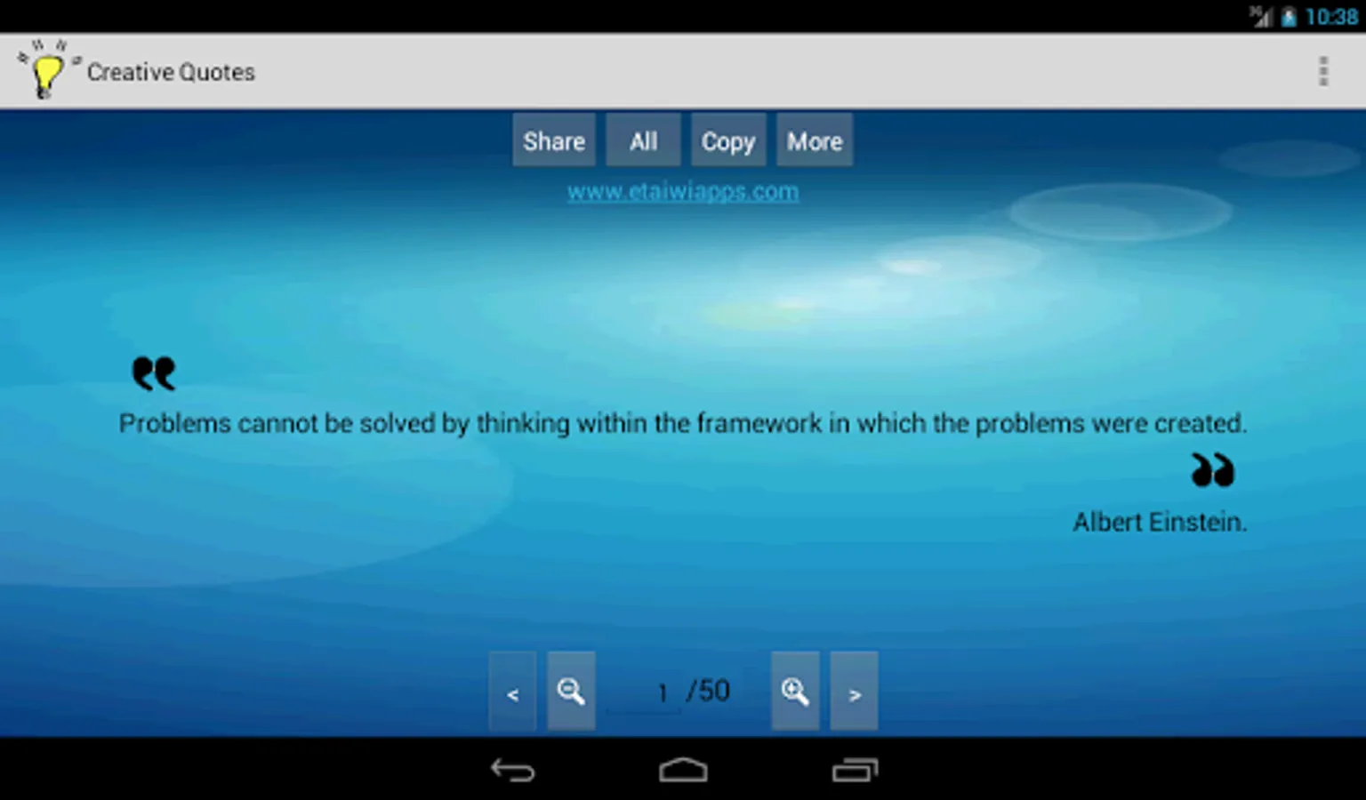 Creative Quotes app is a collection of quotes about creativity, Inspiration, passion and successful in order to keep your creativity alive and grow everyday. It contains sayings from philosophers, writers, spiritual thinkers and others.
