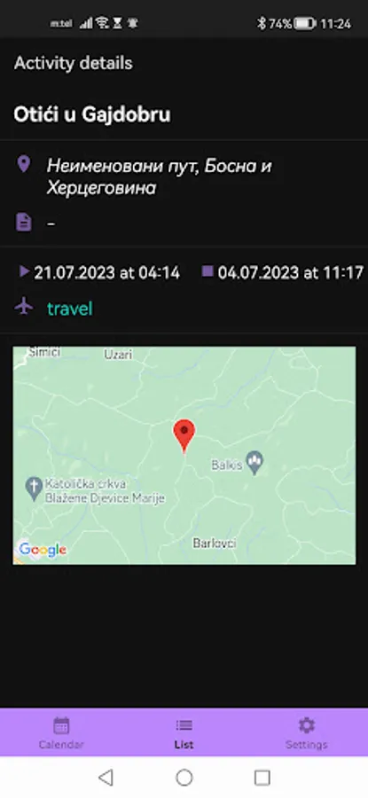 Plan your activities with Activity Manager. Specify exact location of your activities on Google Map. Upload related photos.