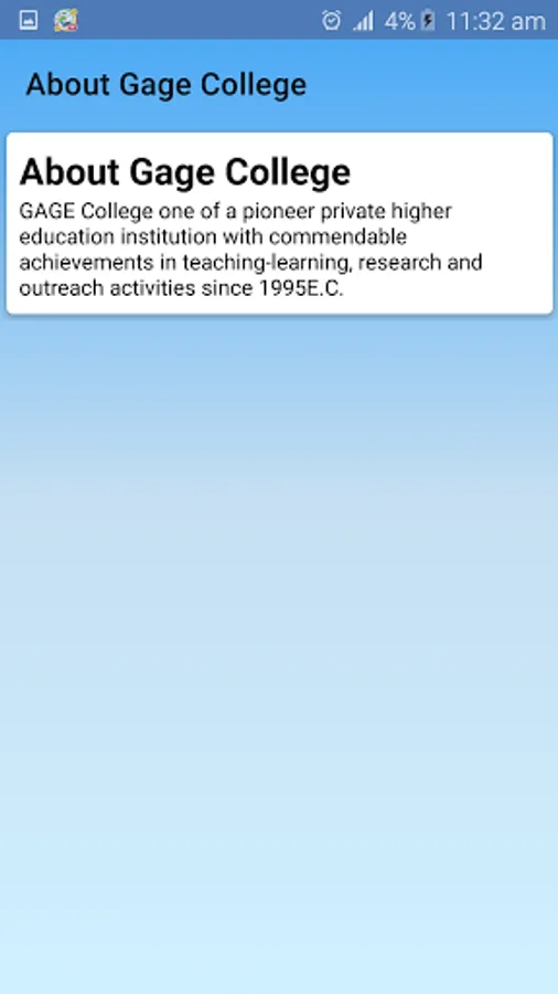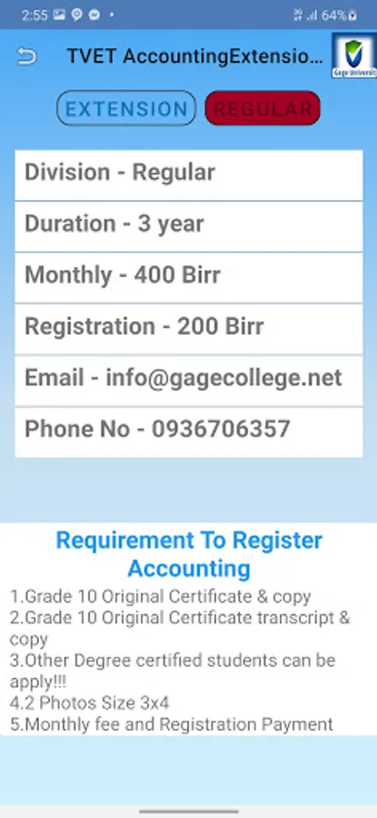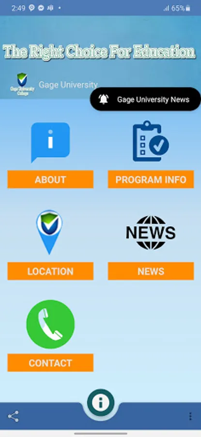 This GUC (Gage university college)application used for new student to get more information about Gage University College , a private college in Ethiopia, offers degrees comparable to associate's, bachelor's and master's in several categories. The GUC has five campuses around Addis Ababa, similar to a regional campus model, and has been consistently growing in admissions and programs offered.