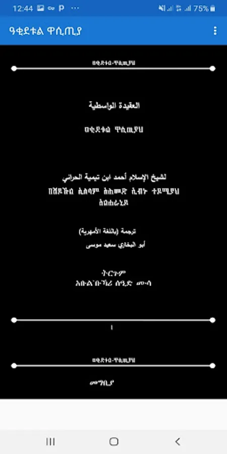 ዓቂደቱል ዋሲጢያ አንድ ሙስሊም መያዝ ያለበት መሀከለኛው የእምነት መሰረት ከቁርዓን እና ሐዲስ የሚያስተምር ድንቅ መጽሐፍ