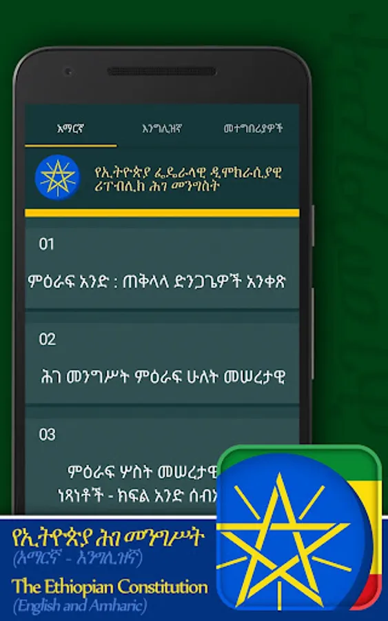 The constitution consists of 106 articles in 11 chapters. It provides for a federal government of nine ethnically based regions governed by a parliament divided into the House of Peoples' Representatives and the House of Federation. It provides for a parliamentary system, with a mostly ceremonial President as head of state, and executive power vested in a Council of Ministers headed by a Prime Minister.