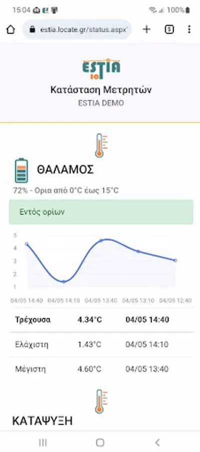 The ESTIA platform is a complete telemetry system with temperature recorders, temperature monitoring or any other measurement deemed necessary and is suitable for companies that manage sensitive products such as food, drugs, chemicals. The application receives notifications about the status of the sensors.