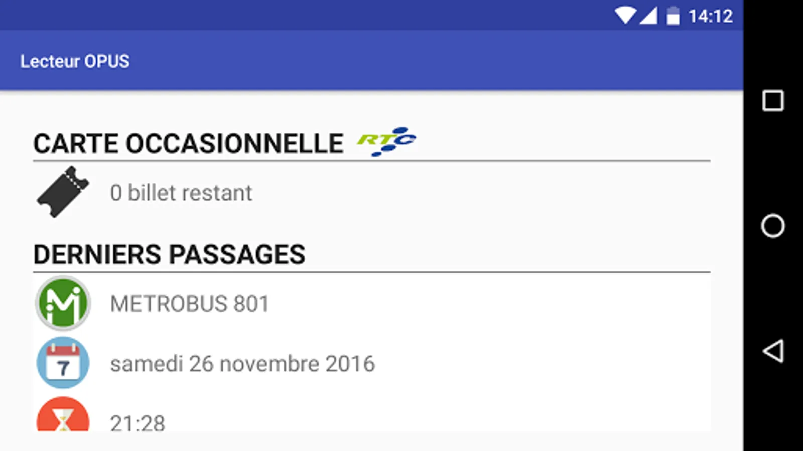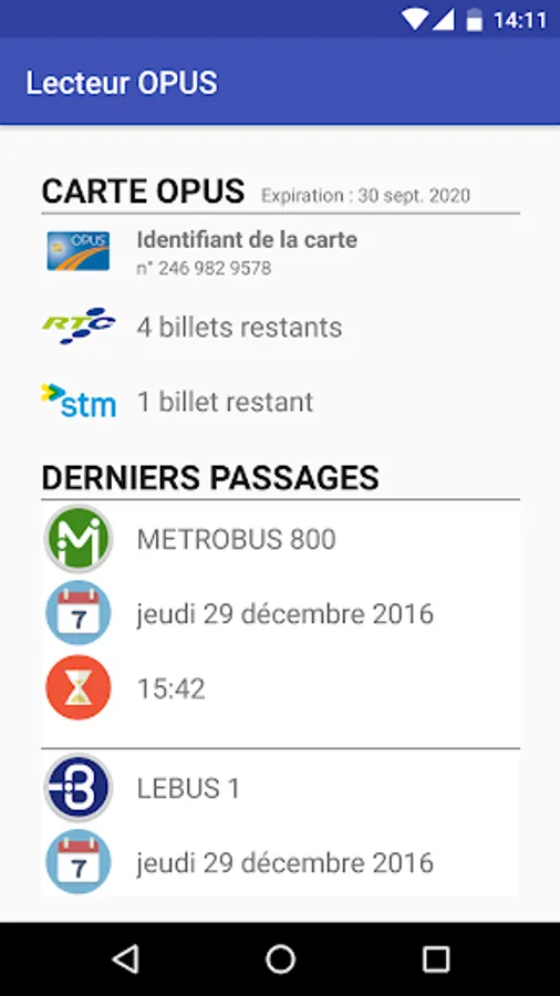 OPUS reader is a portable bus card reader. It shows the (s) pass (s) flow (s), the number of remaining tickets and shows historical past trips made with the card.