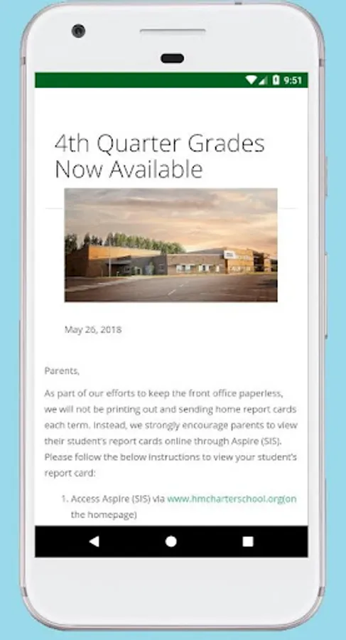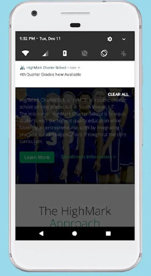This app is intended for parents and guardians of students who attend HighMark Charter School in South Weber, Utah. The app allows parents to receive notifications on their devices when the school posts new information to the website. Tapping these notifications will take the user directly to the new information on the school's website. Further the app can be used as a convenient bookmark for the school's website providing rapid access to school information and school contact forms, especially the Excuse Absence form.