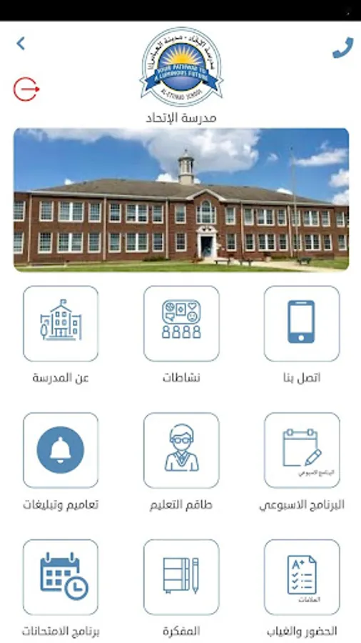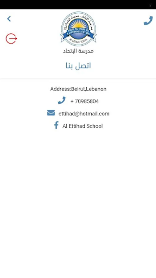 (Contact Us): Shows all the means of communication available with the school from the phone number, email and Facebook account